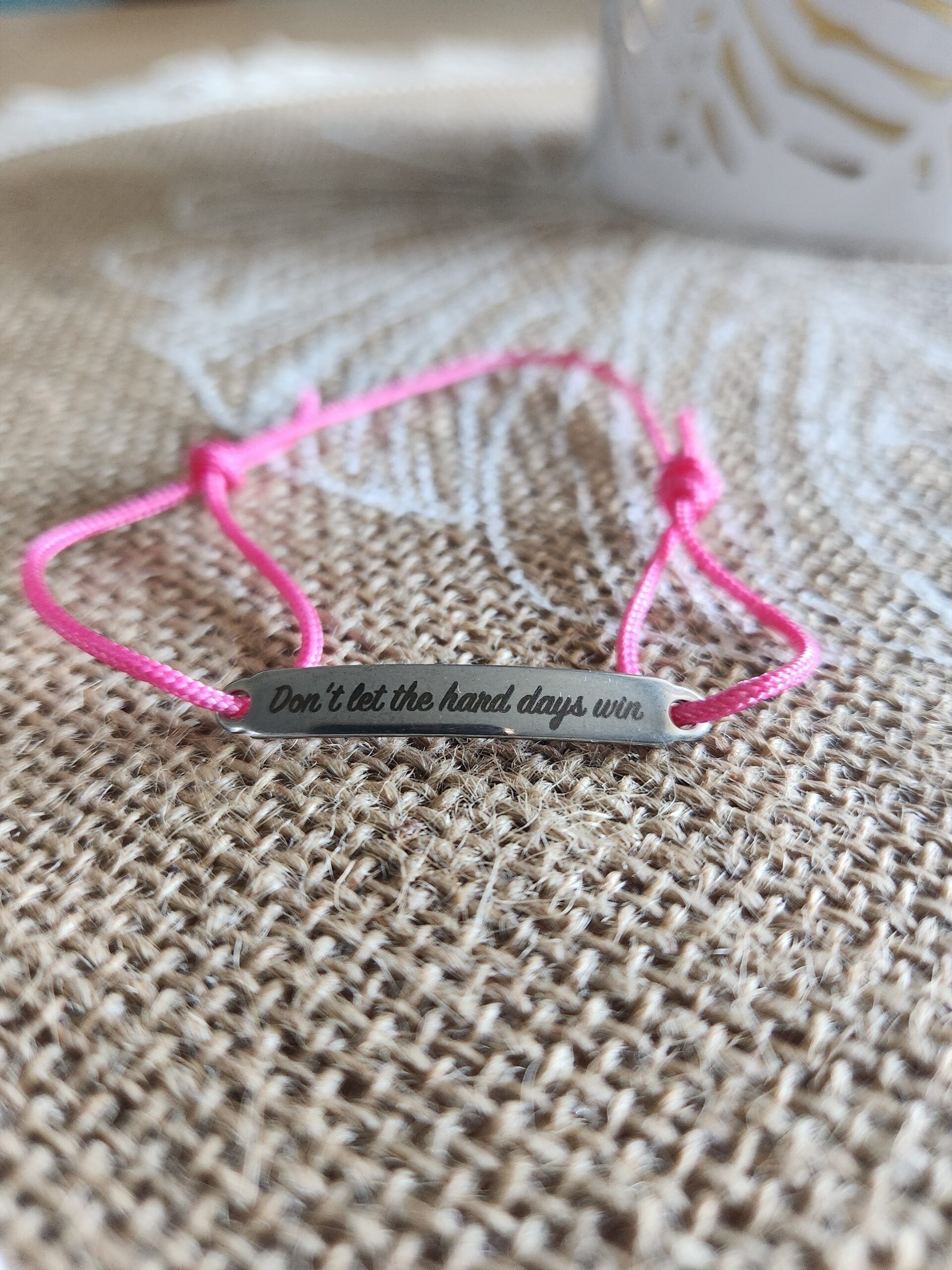Bracelet « Don’t let the hard days win » en acier inoxydable, couleur du cordon rose